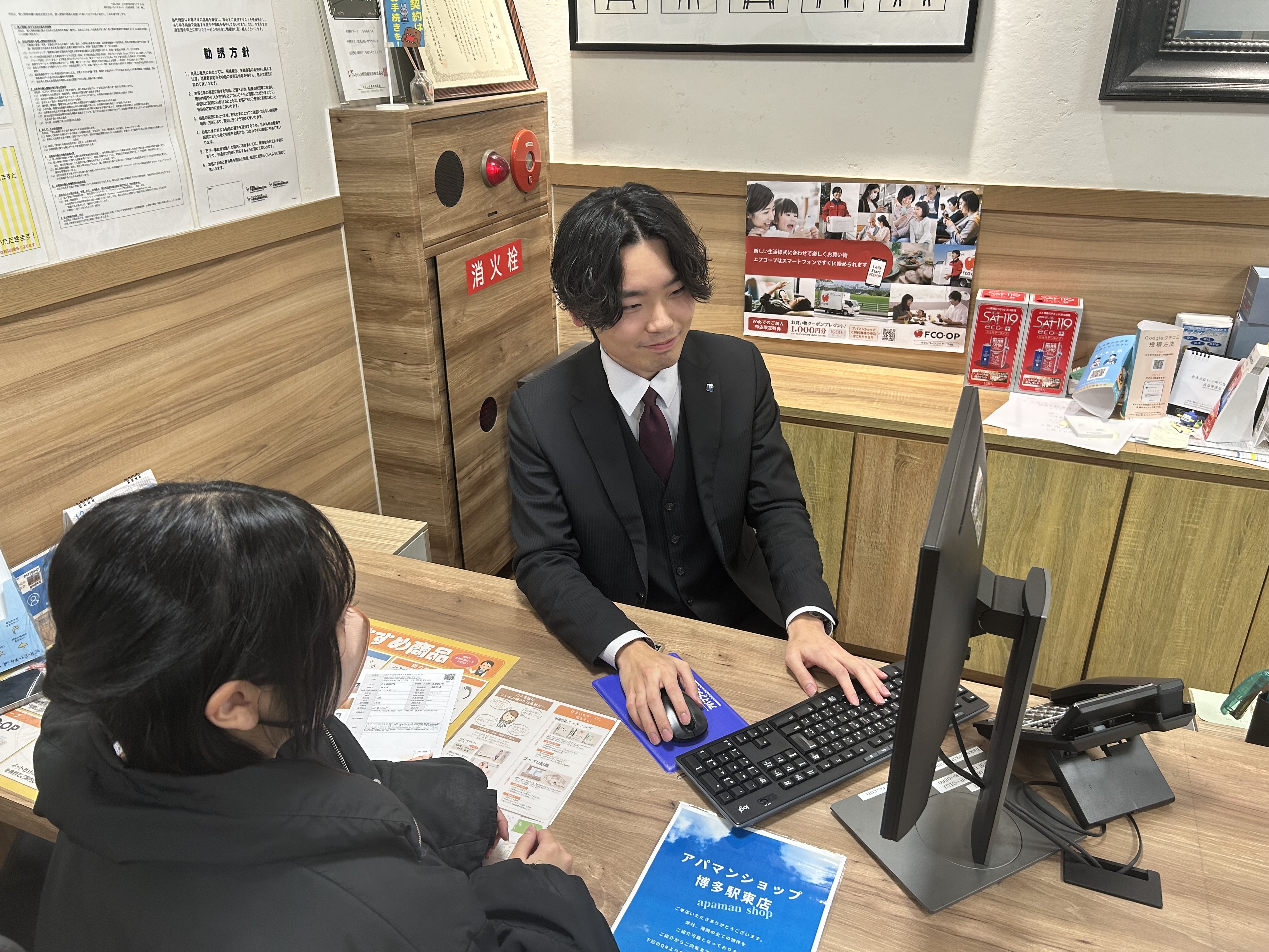 ご来店いただいたお客様のお部屋(賃貸)探しのサポートや物件のご案内、契約手続き、管理物件の確認などを行っております。